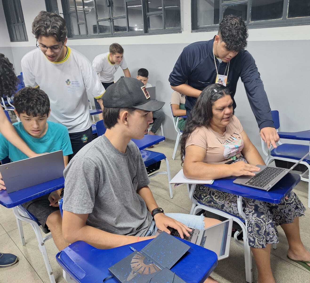 Cerca de 40 estudantes, dois professores e dois estudantes orientadores da escola da cidade do Norte se organizaram em um time para trabalhar em missão denominada voltada para a inclusão digital, ao longo do ano