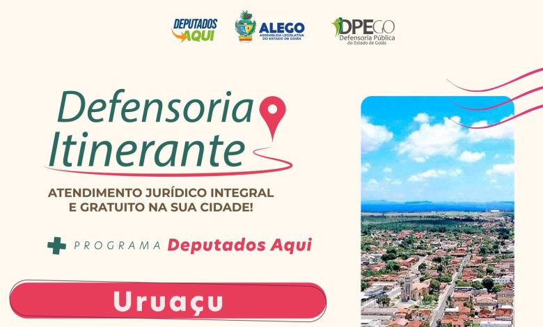 Neste sábado (29), das 8 às 17 horas, a Defensoria Pública do Estado de Goiás (DPE-GO) realizará atendimentos jurídicos integrais e gratuitos à população em situação de vulnerabilidade no Parque Agropecuário de Uruaçu, durante o evento Deputados Aqui, da Assembleia Legislativa de Goiás (Alego).