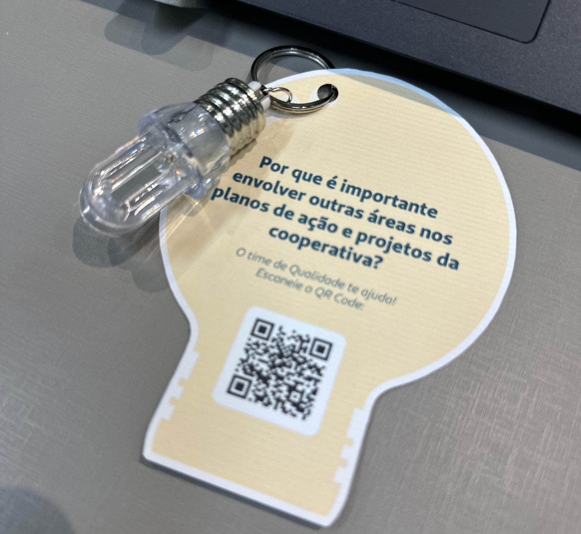 A dinâmica também se conecta com as redes internas da cooperativa: os colaboradores que encontram as lâmpadas são convidados a fazer publicações espontâneas com suas percepções sobre a Qualidade e a experiência com a atividade.