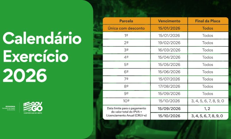 A novidade em 2026 é o parcelamento da Taxa de Licenciamento Anual do Veículo (CRLV-e) em até dez parcelas, junto com o IPVA, conforme lei aprovada pela Assembleia Legislativa do Estado de Goiás (Alego).