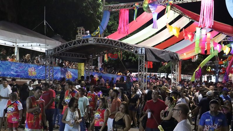 Além da programação, a ambientação da área delimitada para o Carnaval contribuiu para o clima festivo na cidade do Norte.
