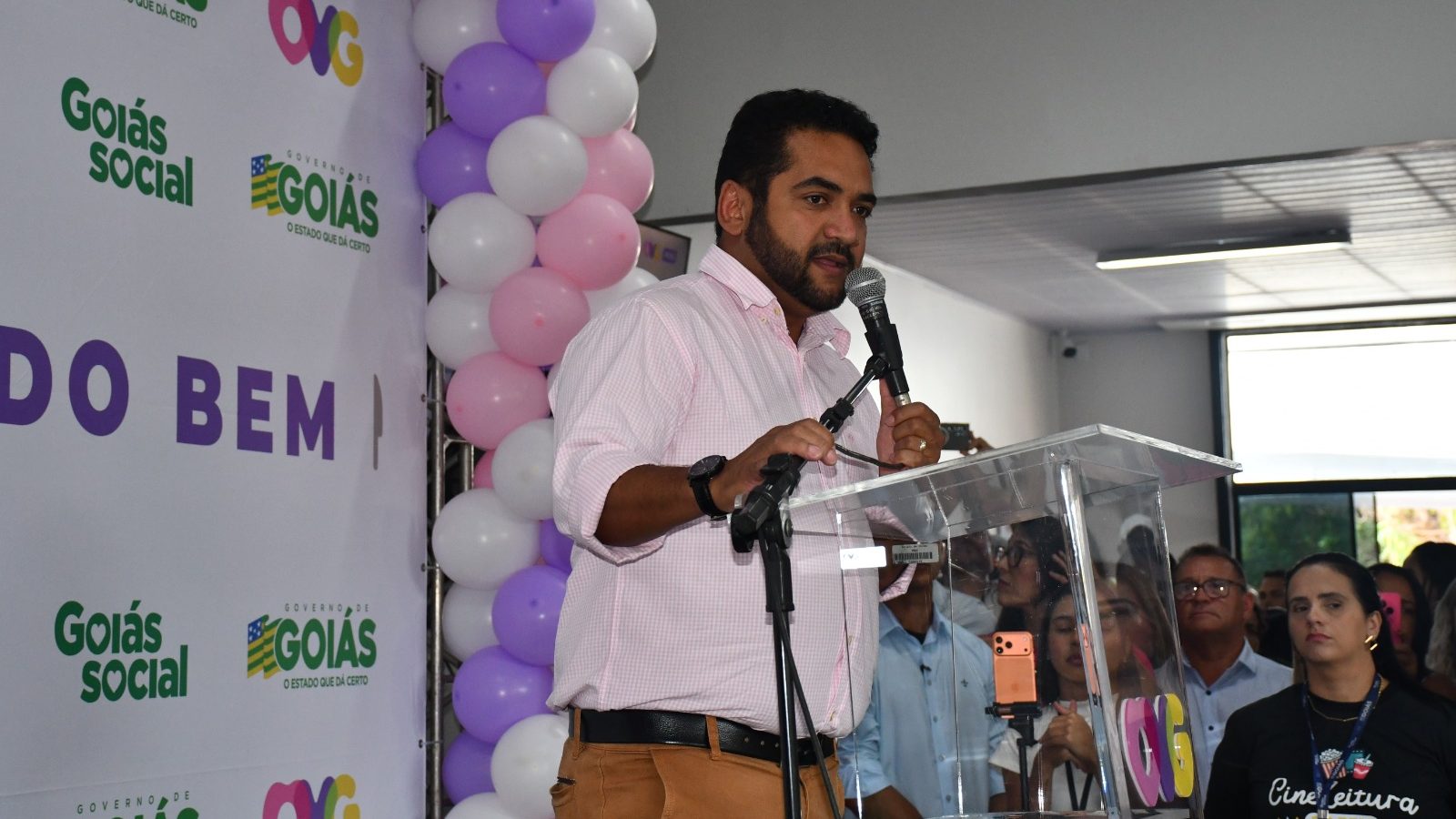 Deputado estadual mais votado em Niquelândia nas eleições de 2022, Júlio Pina também discursou na inauguração do Restaurante do Bem na cidade, considerada um de seus principais redutos eleitorais também para o pleito deste ano, quando deverá tentar a reeleição [Foto: Excelência Notícias]