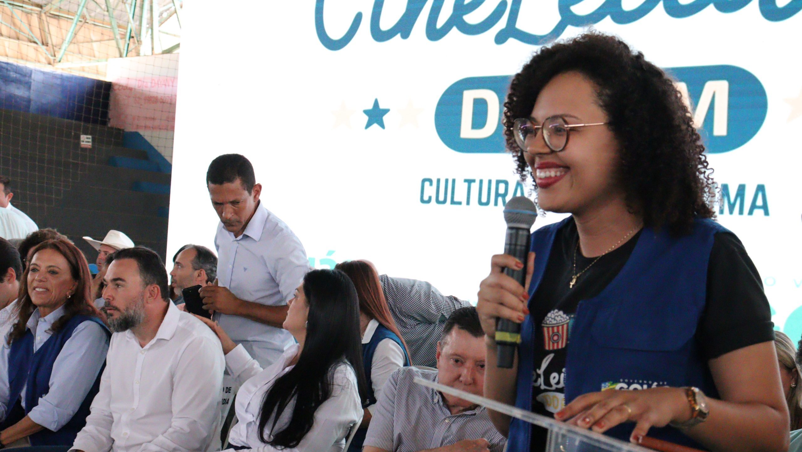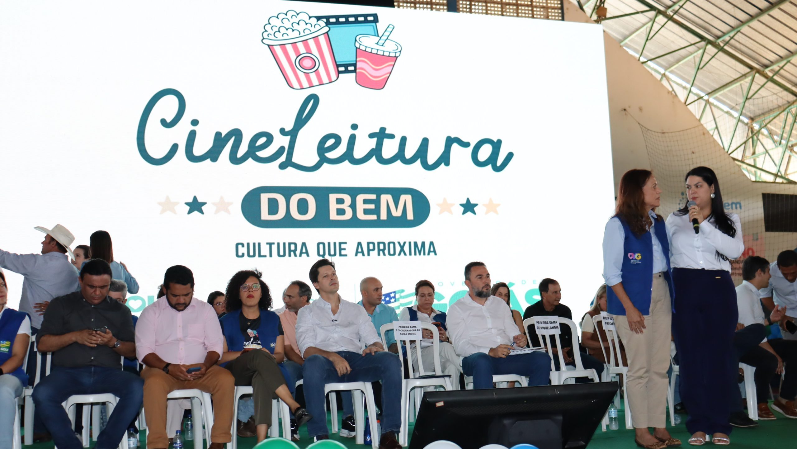 Nessa primeira cerimônia, a primeira-dama de Niquelândia reforçou seus agradecimentos às duas autoridades do Governo de Goiás pela iniciativa do Cine Leitura do Bem no município.