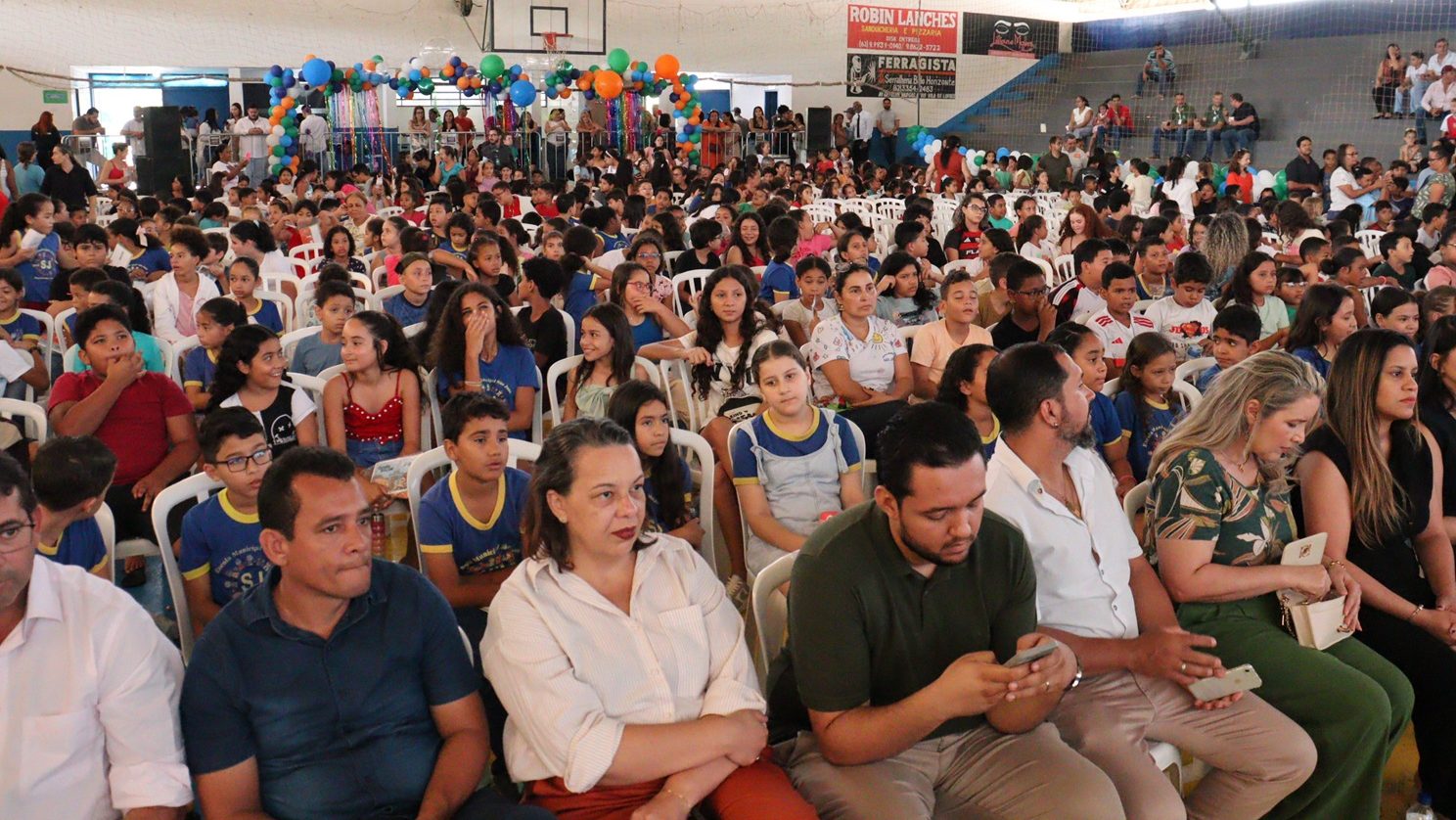 Público lotou quadra do Ginásio de Esportes de Niquelândia durante lançamento do Projeto Cine Leitura do Bem, do Governo de Goiás, na última quarta-feira [Foto: João Eustáquio/SECOM Niquelândia]