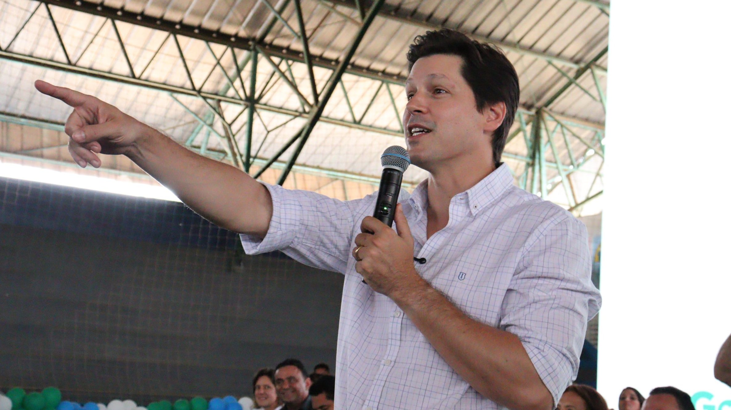Buscando ampliar sua popularidade, vice-governador Daniel Vilela interagiu de forma descontraída com o público que esteve no Ginásio de Esportes de Niquelândia no lançamento do Projeto Cine Leitura do Bem: ele assume o Governo de Goiás no próximo dia 31 para tentar reeleição no exercício do cargo [Foto: João Eustáquio/SECOM Niquelândia]